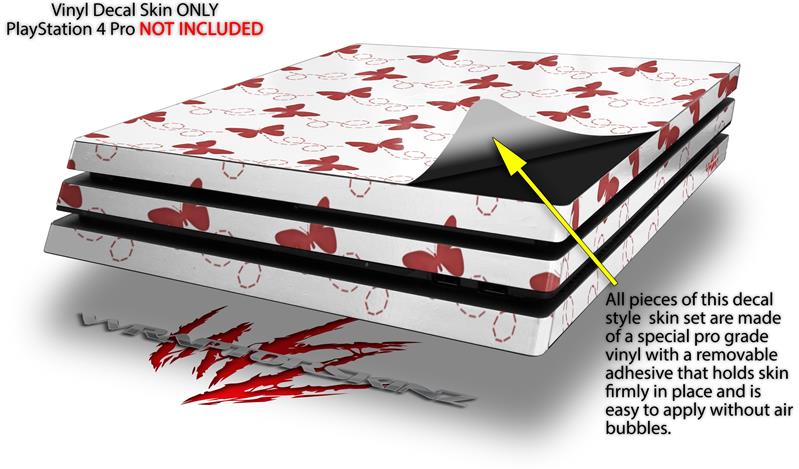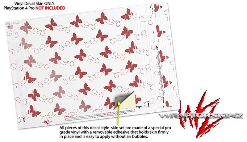 Vinyl Decal Skin Wrap compatible with Sony PlayStation 4 Pro Console Pastel Butterflies Red on White (PS4 NOT INCLUDED)