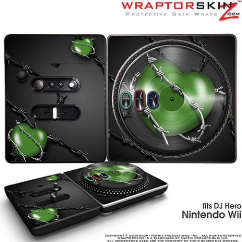 DJ Hero Skin Barbwire Heart Green fits Nintendo Wii DJ Heros
