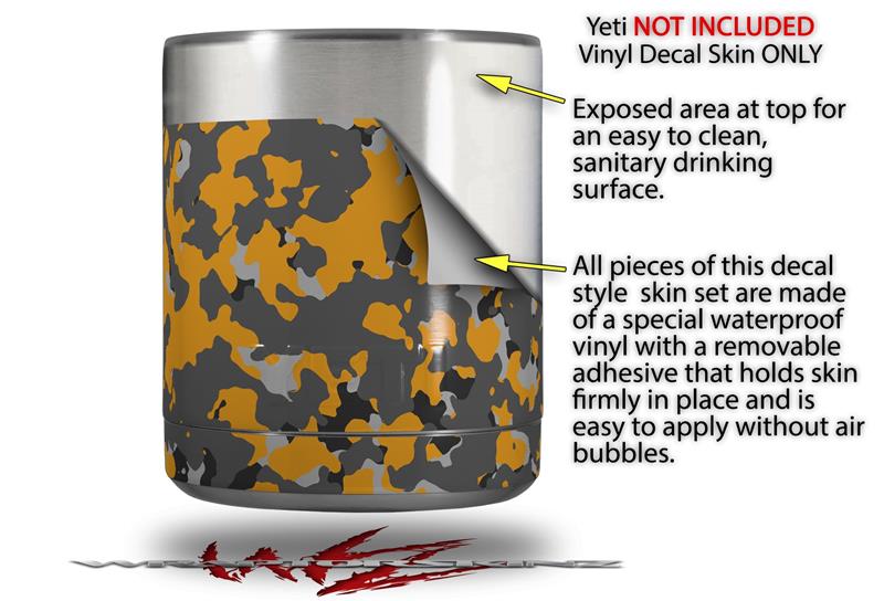 Skin Decal Wrap for Yeti Rambler Lowball - WraptorCamo Old School Camouflage Camo Orange (CUP NOT INCLUDED)