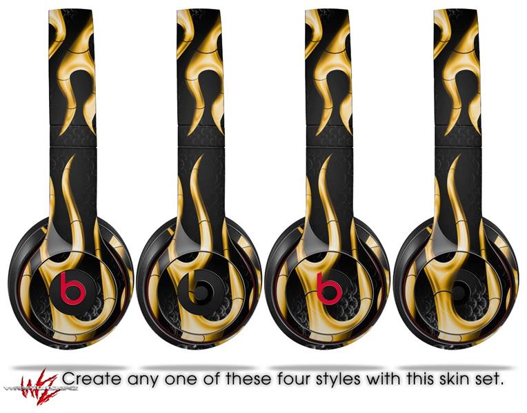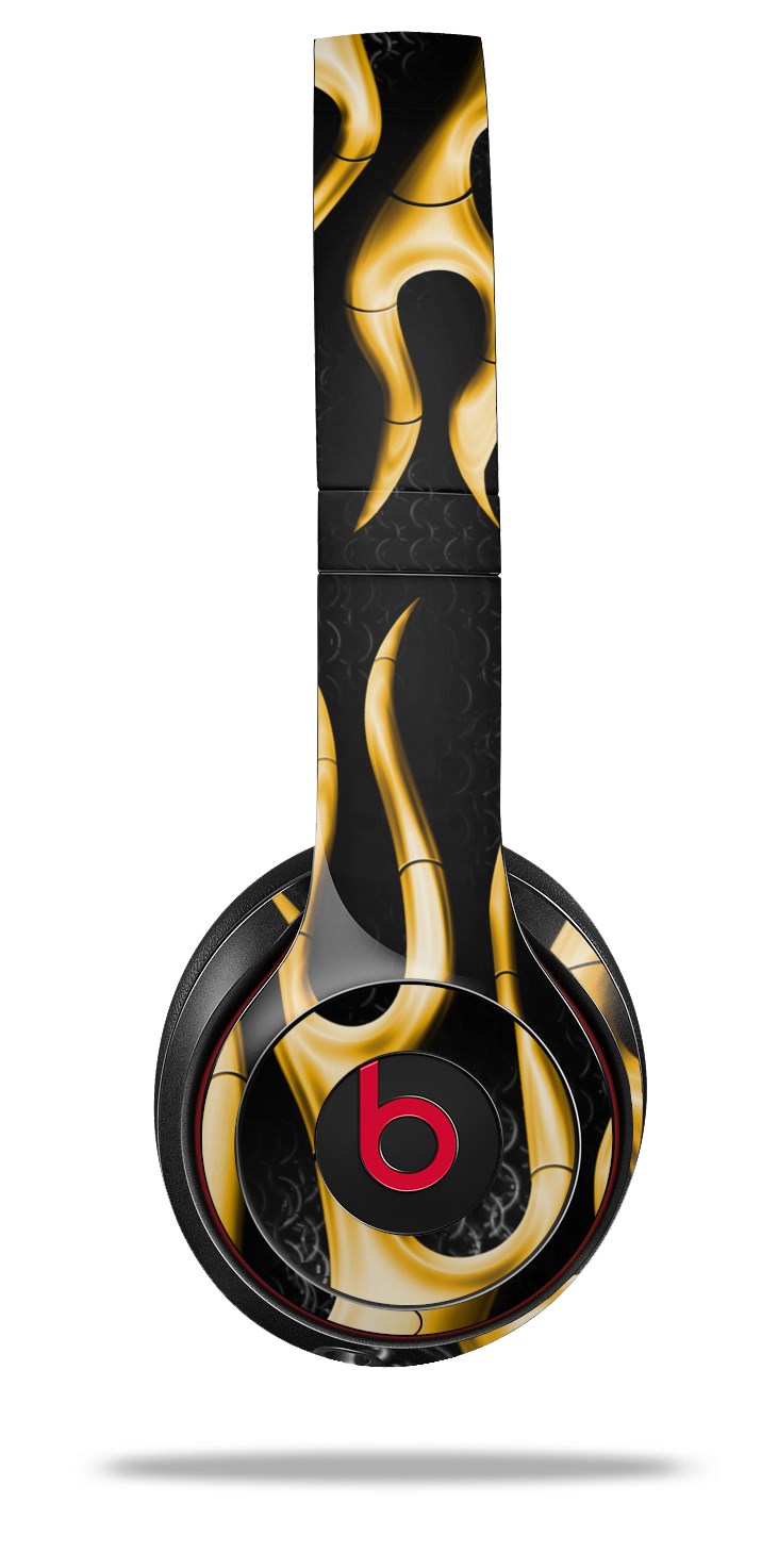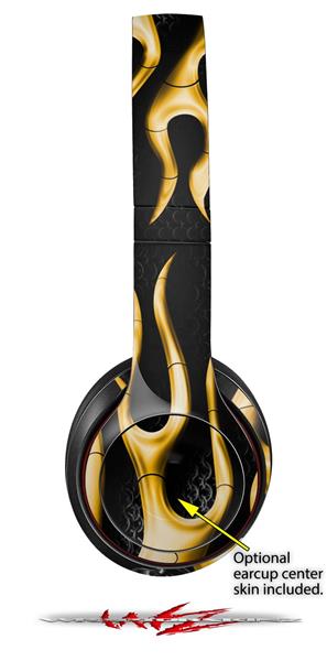 WraptorSkinz Skin Decal Wrap compatible with Beats Solo 2 and Solo 3 Wireless Headphones Metal Flames Yellow Skin Only (HEADPHONES NOT INCLUDED)