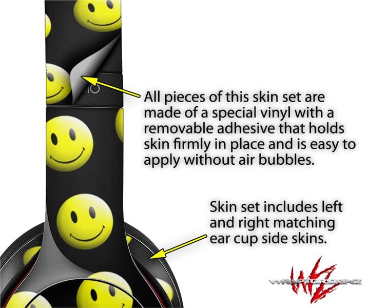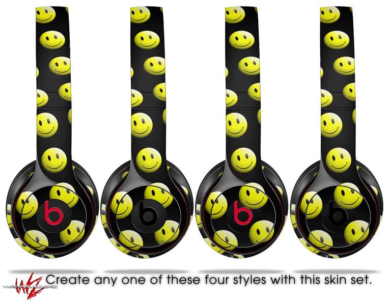 WraptorSkinz Skin Decal Wrap compatible with Beats Solo 2 and Solo 3 Wireless Headphones Smileys on Black Skin Only (HEADPHONES NOT INCLUDED)