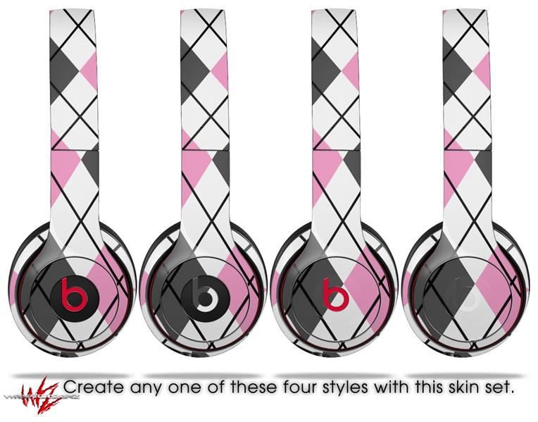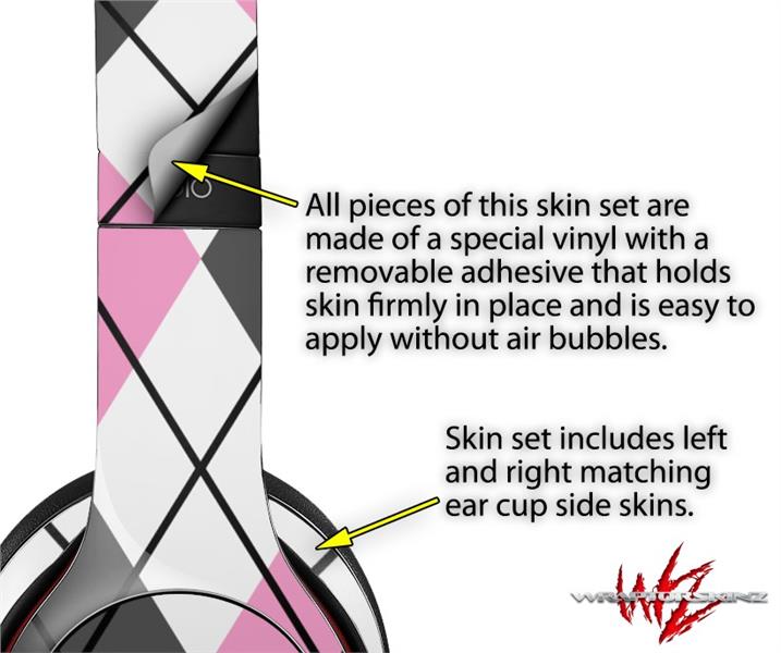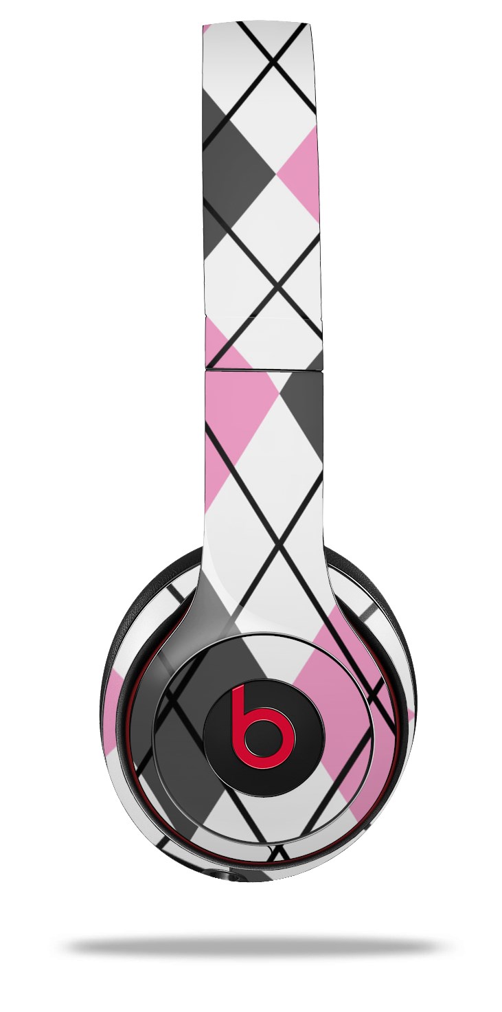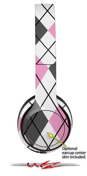 WraptorSkinz Skin Decal Wrap compatible with Beats Solo 2 and Solo 3 Wireless Headphones Argyle Pink and Gray Skin Only (HEADPHONES NOT INCLUDED)