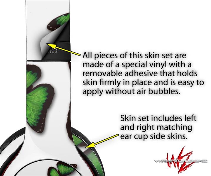 WraptorSkinz Skin Decal Wrap compatible with Beats Solo 2 and Solo 3 Wireless Headphones Butterflies Green Skin Only (HEADPHONES NOT INCLUDED)