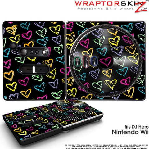 DJ Hero Skin Kearas Hearts on Black fits Nintendo Wii DJ Heros