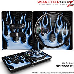 DJ Hero Skin Metal Flames Blue fits Nintendo Wii DJ Heros