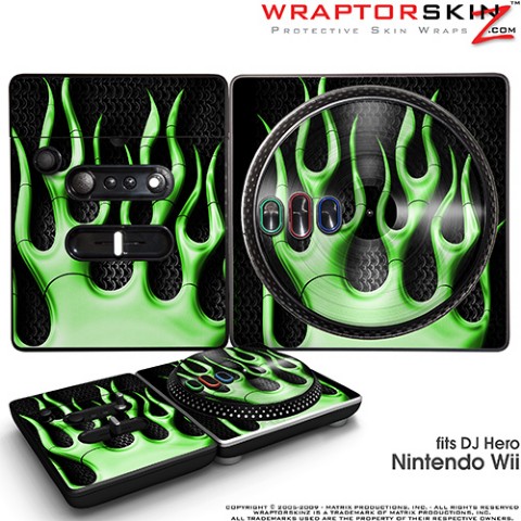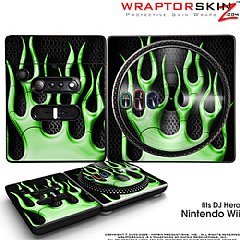 DJ Hero Skin Metal Flames Green fits Nintendo Wii DJ Heros
