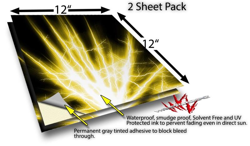 WraptorSkinz® skin vinyl craft sheets are printed using superb photo quality designs and vibrant colors printed with special UV Protected fade resistant inks that last even in direct sun for years. Unlike other brands our inks are NOT solvent based. WraptorSkinz® are a manufactured from professional grade 3mill vinyl. These sheets are waterproof, the designs will not run or smear even if submerged in water.