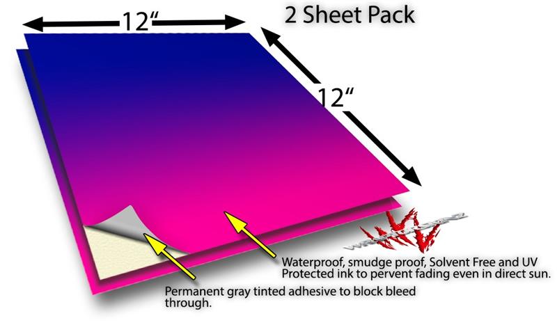WraptorSkinz® skin vinyl craft sheets are printed using superb photo quality designs and vibrant colors printed with special UV Protected fade resistant inks that last even in direct sun for years. Unlike other brands our inks are NOT solvent based. WraptorSkinz® are a manufactured from professional grade 3mill vinyl. These sheets are waterproof, the designs will not run or smear even if submerged in water.