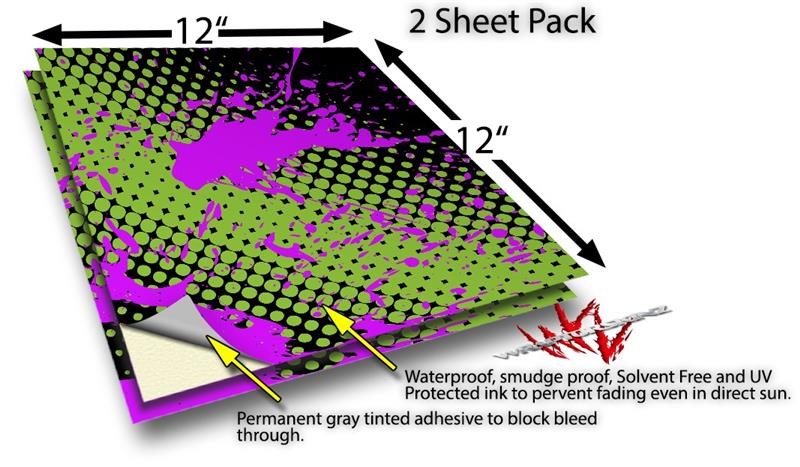 WraptorSkinz® skin vinyl craft sheets are printed using superb photo quality designs and vibrant colors printed with special UV Protected fade resistant inks that last even in direct sun for years. Unlike other brands our inks are NOT solvent based. WraptorSkinz® are a manufactured from professional grade 3mill vinyl. These sheets are waterproof, the designs will not run or smear even if submerged in water.