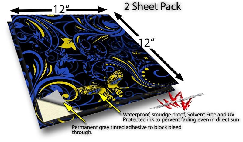 WraptorSkinz® skin vinyl craft sheets are printed using superb photo quality designs and vibrant colors printed with special UV Protected fade resistant inks that last even in direct sun for years. Unlike other brands our inks are NOT solvent based. WraptorSkinz® are a manufactured from professional grade 3mill vinyl. These sheets are waterproof, the designs will not run or smear even if submerged in water.