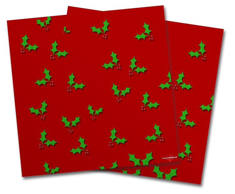 Vinyl Craft Cutter Designer 12x12 Sheets Christmas Holly Leaves on Red - 2 Pack