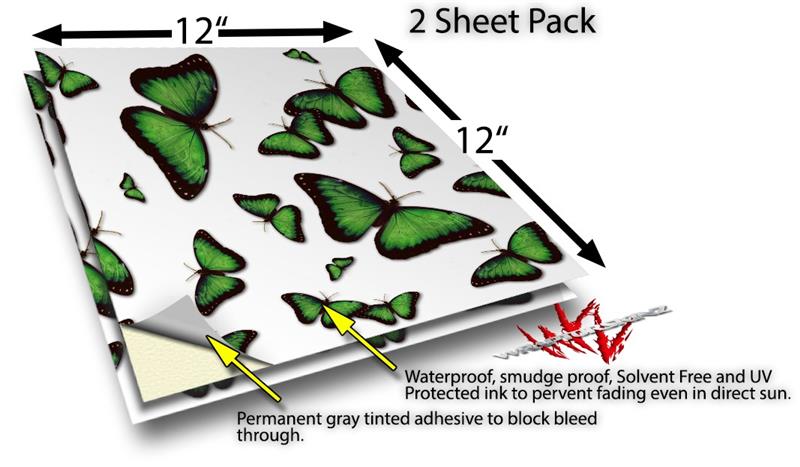 WraptorSkinz® skin vinyl craft sheets are printed using superb photo quality designs and vibrant colors printed with special UV Protected fade resistant inks that last even in direct sun for years. Unlike other brands our inks are NOT solvent based. WraptorSkinz® are a manufactured from professional grade 3mill vinyl. These sheets are waterproof, the designs will not run or smear even if submerged in water.