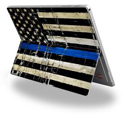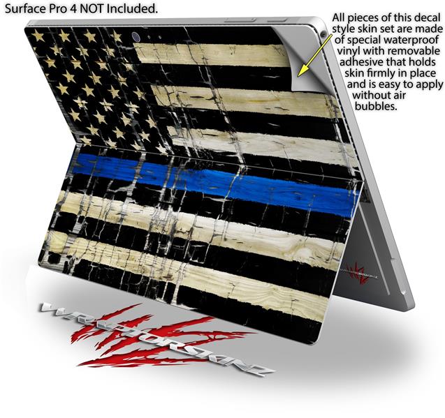 Decal Style Vinyl Skin for Microsoft Surface Pro 4 - Painted Faded Cracked Blue Line Stripe USA American Flag - (SURFACE NOT INCLUDED)