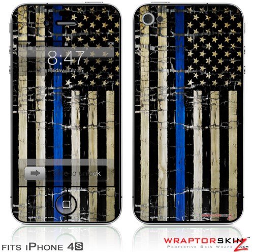 iPhone 4S Skin Painted Faded Cracked Blue Line Stripe USA American Flag