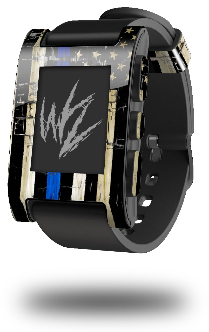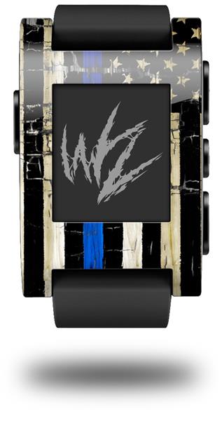 Painted Faded Cracked Blue Line Stripe USA American Flag - Decal Style Skin fits original Pebble Smart Watch (WATCH SOLD SEPARATELY)