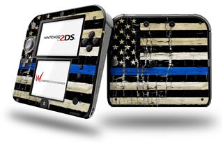Painted Faded Cracked Blue Line Stripe USA American Flag - Decal Style Vinyl Skin fits Nintendo 2DS - 2DS NOT INCLUDED
