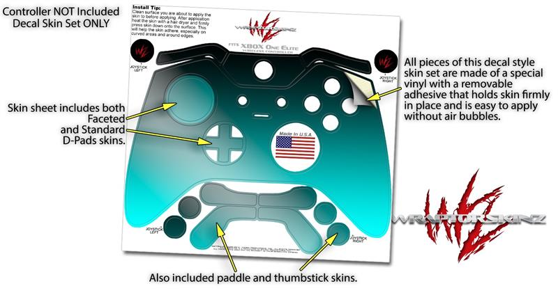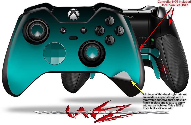 Smooth Fades Neon Teal Black - Decal Style Skin fits Microsoft XBOX One ELITE Wireless Controller (CONTROLLER NOT INCLUDED)
