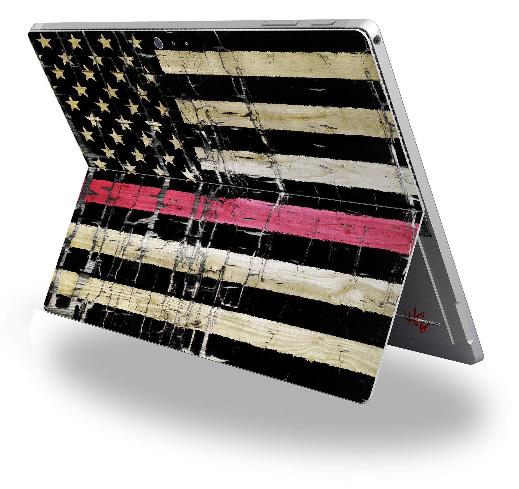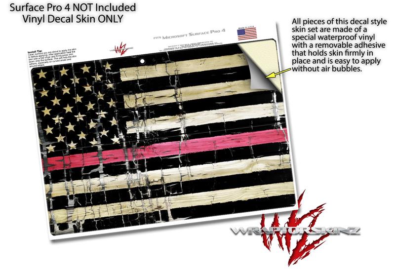 Decal Style Vinyl Skin for Microsoft Surface Pro 4 - Painted Faded and Cracked Pink Line USA American Flag - (SURFACE NOT INCLUDED)