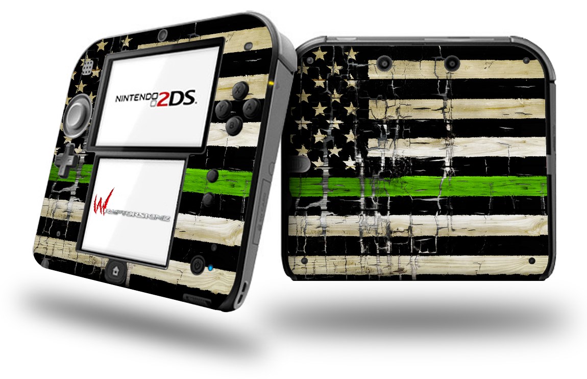 Painted Faded and Cracked Green Line USA American Flag - Decal Style Vinyl Skin fits Nintendo 2DS - 2DS NOT INCLUDED
