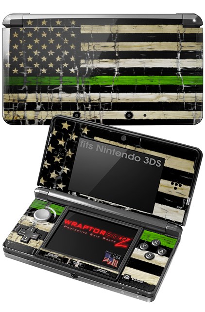 Nintendo 3DS Decal Style Skin - Painted Faded and Cracked Green Line USA American Flag