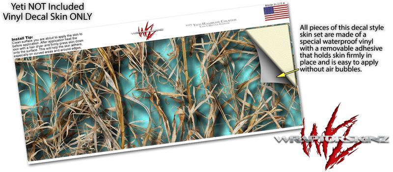 Skin Decal Wrap for Yeti Colster, Ozark Trail and RTIC Can Coolers - WraptorCamo Grassy Marsh Camo Neon Teal (COOLER NOT INCLUDED)