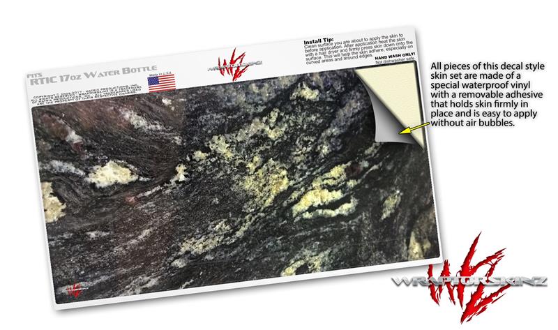 Skin Decal Wrap for RTIC Water Bottle 17oz Marble Granite 03 Black (BOTTLE NOT INCLUDED)