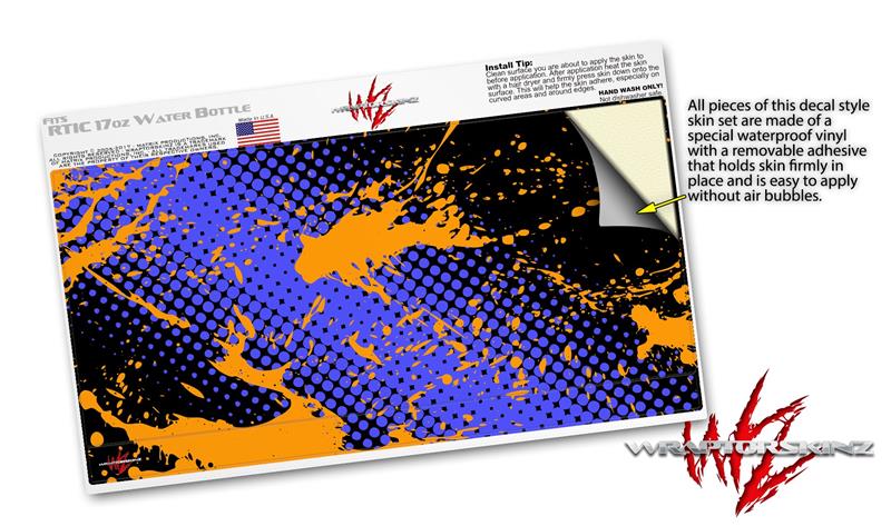 Skin Decal Wrap for RTIC Water Bottle 17oz Halftone Splatter Orange Blue (BOTTLE NOT INCLUDED)