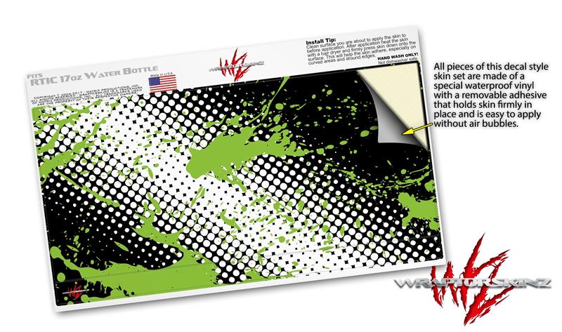 Skin Decal Wrap for RTIC Water Bottle 17oz Halftone Splatter Green White (BOTTLE NOT INCLUDED)