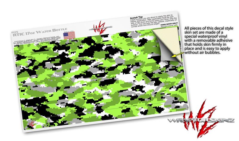 Skin Decal Wrap for RTIC Water Bottle 17oz WraptorCamo Digital Camo Neon Green (BOTTLE NOT INCLUDED)