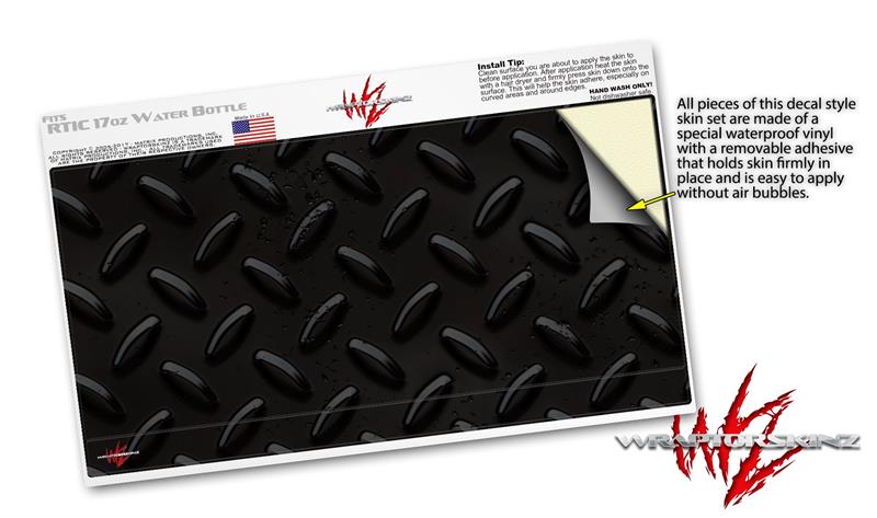 Skin Decal Wrap for RTIC Water Bottle 17oz Diamond Plate Metal 02 Black (BOTTLE NOT INCLUDED)