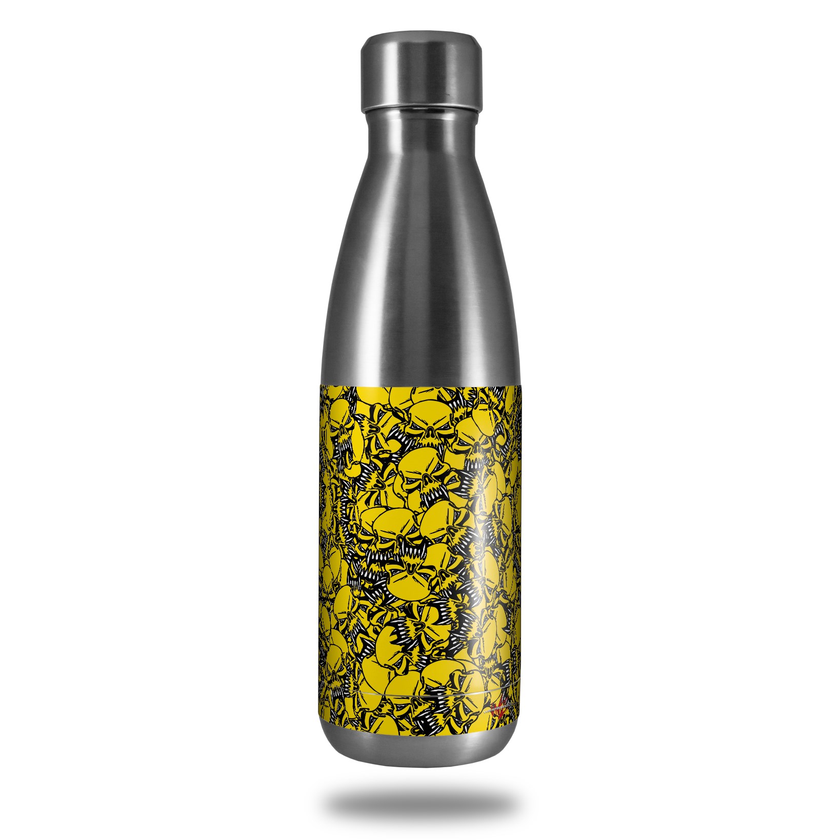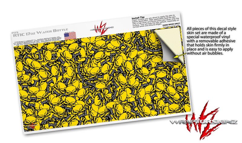 Skin Decal Wrap for RTIC Water Bottle 17oz Scattered Skulls Yellow (BOTTLE NOT INCLUDED)