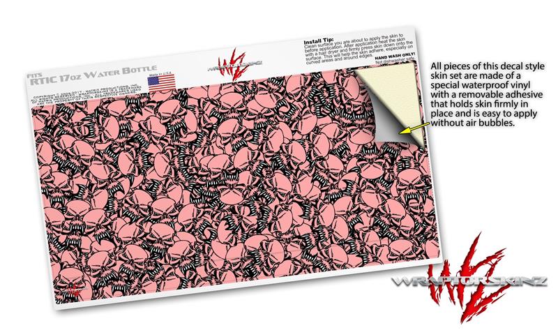 Skin Decal Wrap for RTIC Water Bottle 17oz Scattered Skulls Pink (BOTTLE NOT INCLUDED)