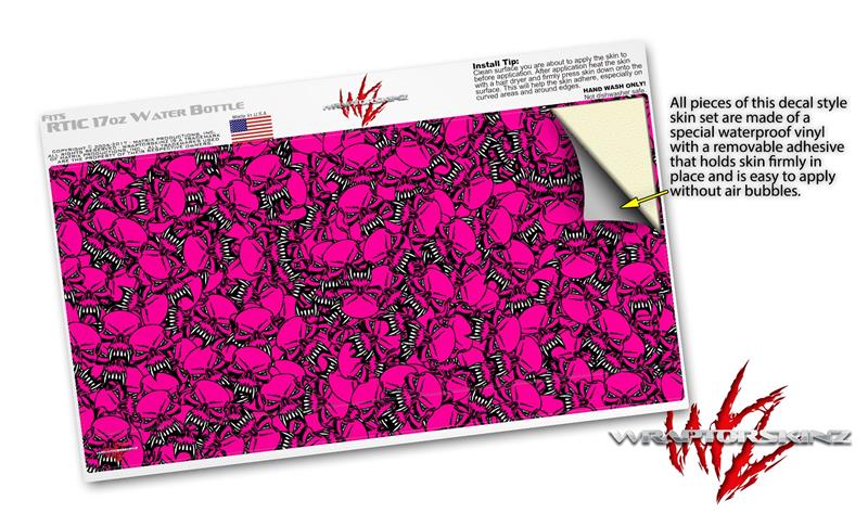 Skin Decal Wrap for RTIC Water Bottle 17oz Scattered Skulls Hot Pink (BOTTLE NOT INCLUDED)