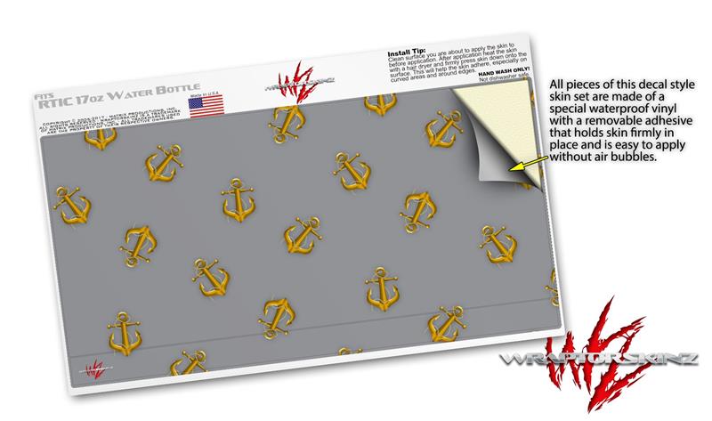 Skin Decal Wrap for RTIC Water Bottle 17oz Anchors Away Gray (BOTTLE NOT INCLUDED)