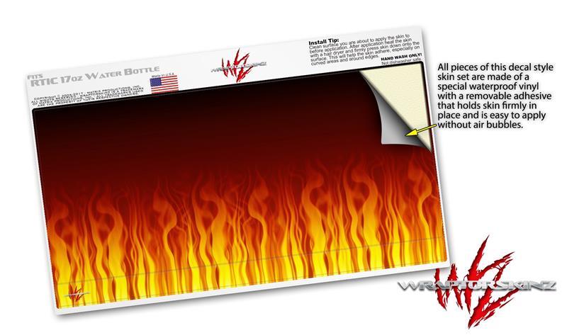 Skin Decal Wrap for RTIC Water Bottle 17oz Fire on Black (BOTTLE NOT INCLUDED)