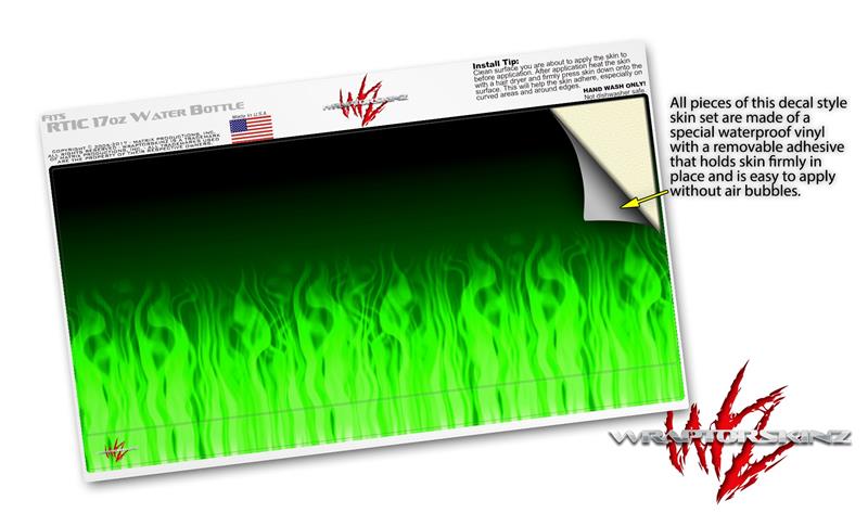 Skin Decal Wrap for RTIC Water Bottle 17oz Fire Green (BOTTLE NOT INCLUDED)