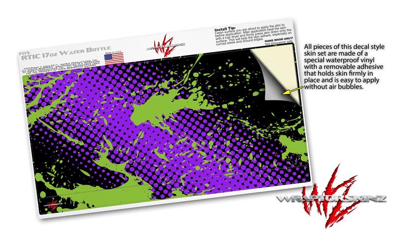 Skin Decal Wrap for RTIC Water Bottle 17oz Halftone Splatter Green Purple (BOTTLE NOT INCLUDED)