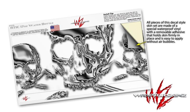 Skin Decal Wrap for RTIC Water Bottle 17oz Chrome Skull on White (BOTTLE NOT INCLUDED)