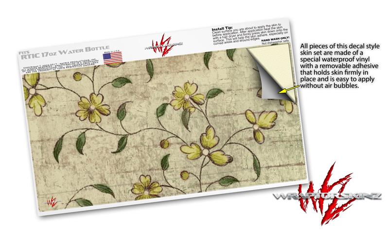 Skin Decal Wrap for RTIC Water Bottle 17oz Flowers and Berries Yellow (BOTTLE NOT INCLUDED)