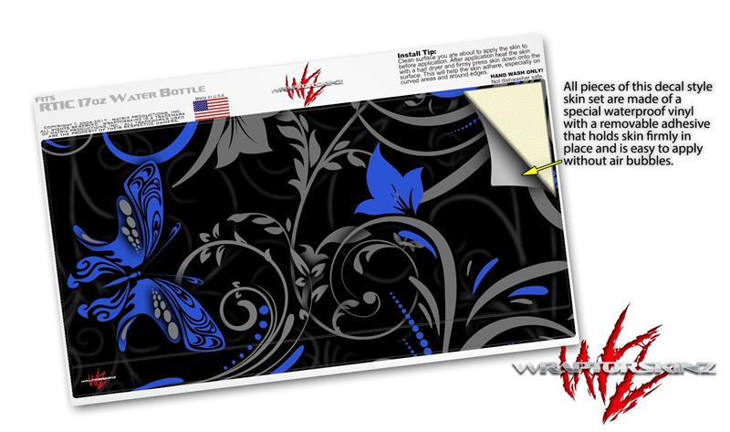 Skin Decal Wrap for RTIC Water Bottle 17oz Twisted Garden Gray and Blue (BOTTLE NOT INCLUDED)