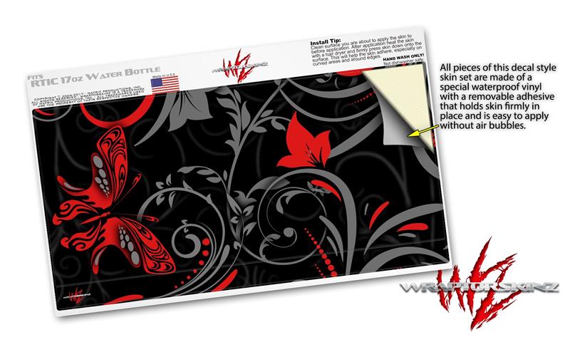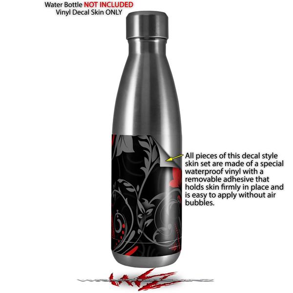 Skin Decal Wrap for RTIC Water Bottle 17oz Twisted Garden Gray and Red (BOTTLE NOT INCLUDED)