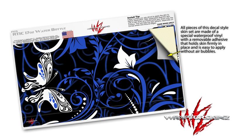 Skin Decal Wrap for RTIC Water Bottle 17oz Twisted Garden Blue and White (BOTTLE NOT INCLUDED)