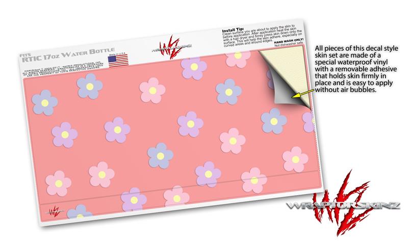 Skin Decal Wrap for RTIC Water Bottle 17oz Pastel Flowers on Pink (BOTTLE NOT INCLUDED)