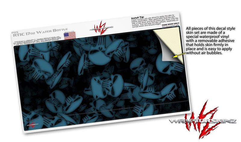 Skin Decal Wrap for RTIC Water Bottle 17oz Skulls Confetti Blue (BOTTLE NOT INCLUDED)