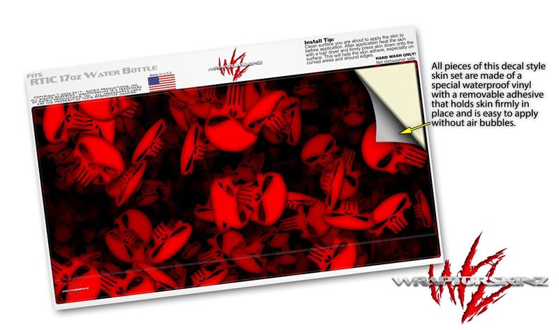 Skin Decal Wrap for RTIC Water Bottle 17oz Skulls Confetti Red (BOTTLE NOT INCLUDED)