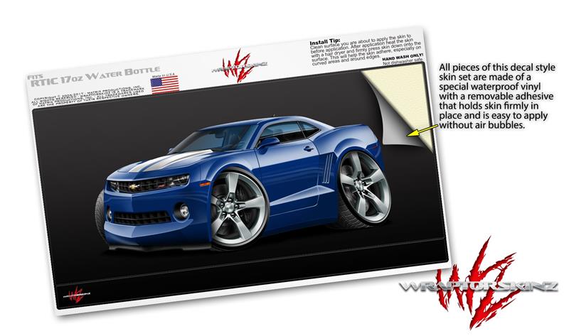 Skin Decal Wrap for RTIC Water Bottle 17oz 2010 Camaro RS Blue (BOTTLE NOT INCLUDED)
