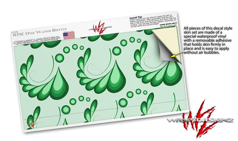 Skin Decal Wrap for RTIC Water Bottle 17oz Petals Green (BOTTLE NOT INCLUDED)