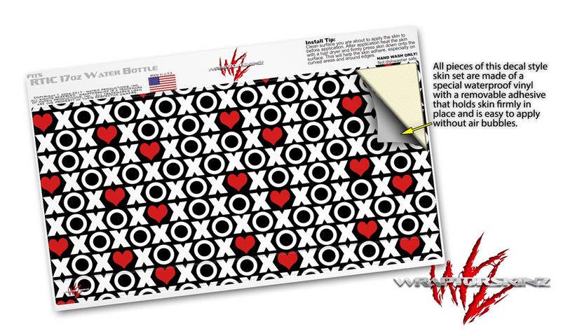 Skin Decal Wrap for RTIC Water Bottle 17oz XO Hearts (BOTTLE NOT INCLUDED)