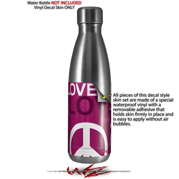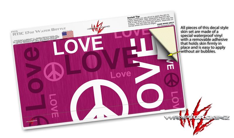 Skin Decal Wrap for RTIC Water Bottle 17oz Love and Peace Hot Pink (BOTTLE NOT INCLUDED)