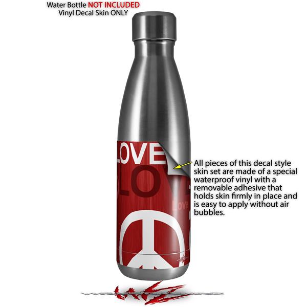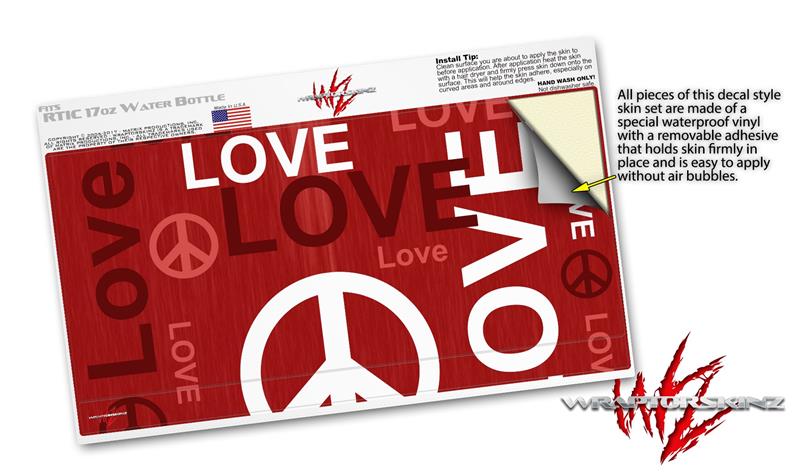 Skin Decal Wrap for RTIC Water Bottle 17oz Love and Peace Red (BOTTLE NOT INCLUDED)